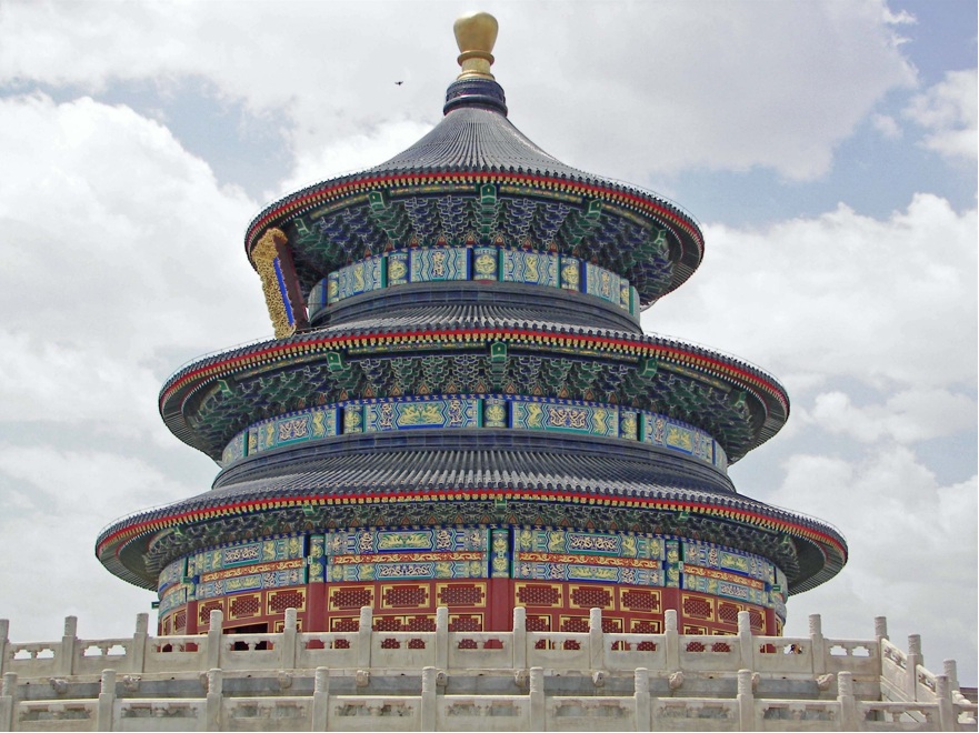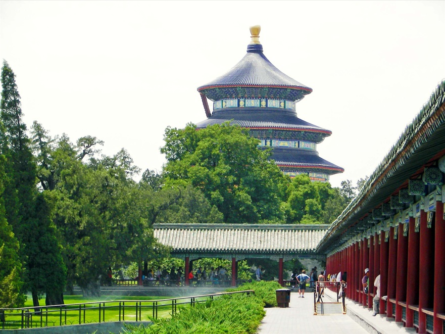 En nuestro ultimo día en esta magnífica ciudad, aprovechamos para conocer el famoso Templo del Cielo, obra maestra construida en 1420, que debe su nombre a que era precisamente en este lugar donde los emperadores feudales, quienes se hacían llamar a si mismos "Hijos del Cielo", durante los días del solsticio de invierno y tras salir del Ciudad Prohibida en medio de una gran ceremonia, oraban y realizaban sacrificios rituales por la obtención de buenas cosechas. Es precioso, como todas las edificaciones históricas chinas.