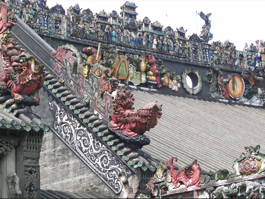 Casa de la familia Chen, conocido como "academia" o "templo" de la familia o clan Chen. Este complejo de edificios y jardines fue construido entre 1890 y 1894 con donaciones de las familias Chen de toda la provincia de Guangdong y del extranjero. (Chen es un apellido muy común en Guangdong).