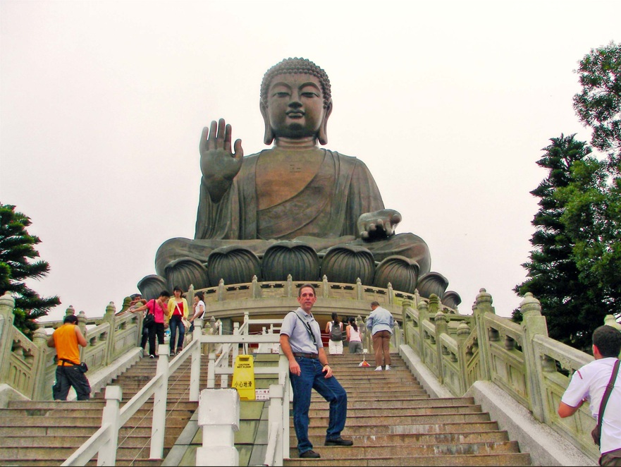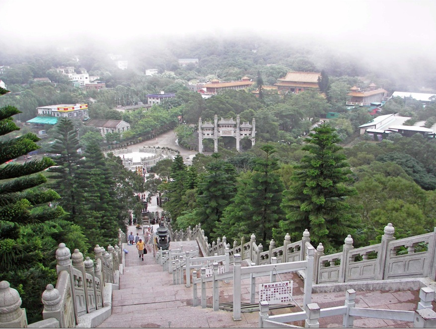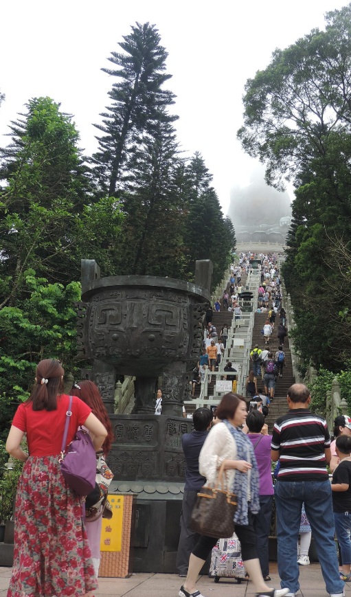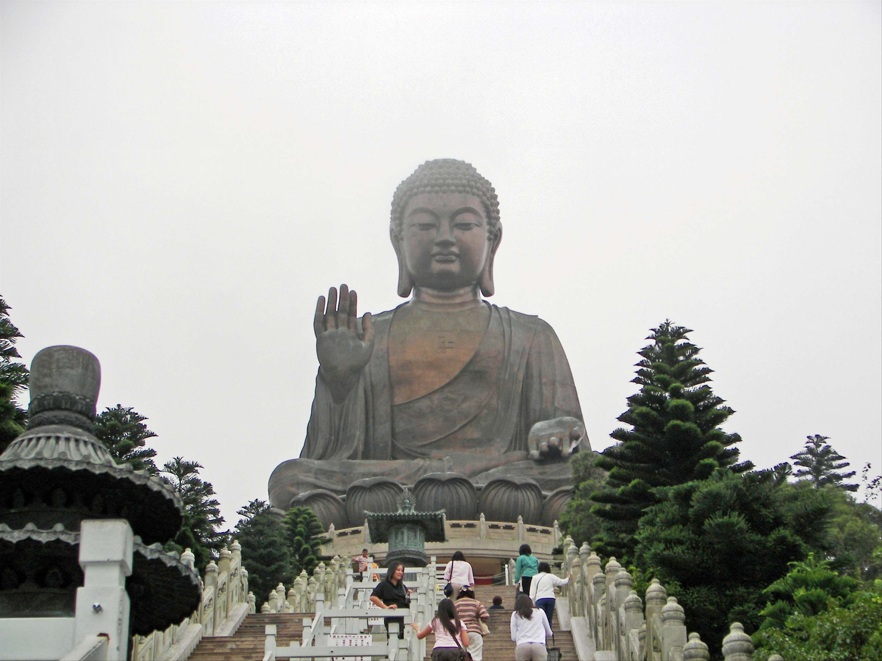 El Gran Buda Tian Tan es una estatua gigante de bronce de un buda Amoghasiddhi terminada en 1993 y ubicada en la aldea de Ngong Ping, ubicada en la Isla de Lantau, en Hong Kong, adyacente al Monasterio de Po Lin. Simboliza la armonía entre el hombre y la naturaleza, la gente y la fe. Es el mayor centro budista de Hong Kong y una de sus mayores atracciones turísticas. Subimos hasta el Buda por sus 231 escalones.