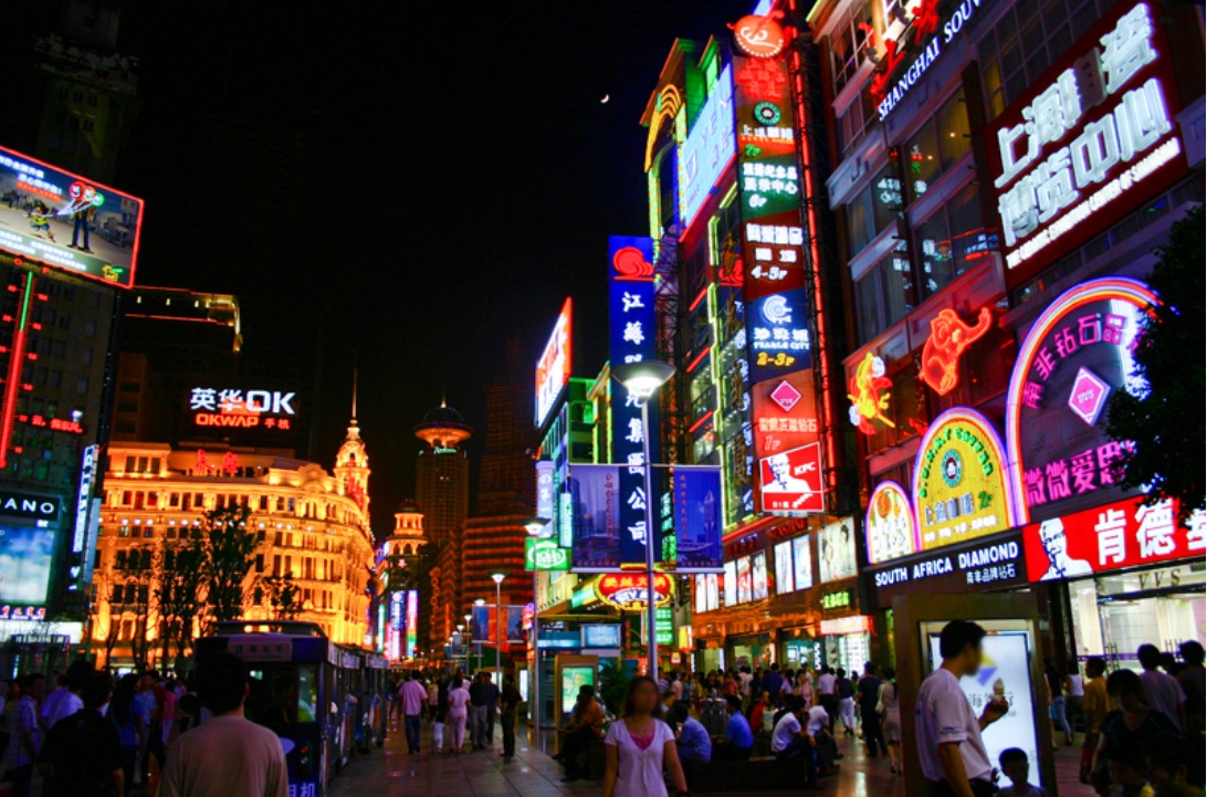 Ya por la noche, fuimos andando por las calles centrales y contemplando las espectaculares luces de los edificios desde un famoso paseo con vistas increíbles, nos metimos por una calle, la famosa calle Nanjing.