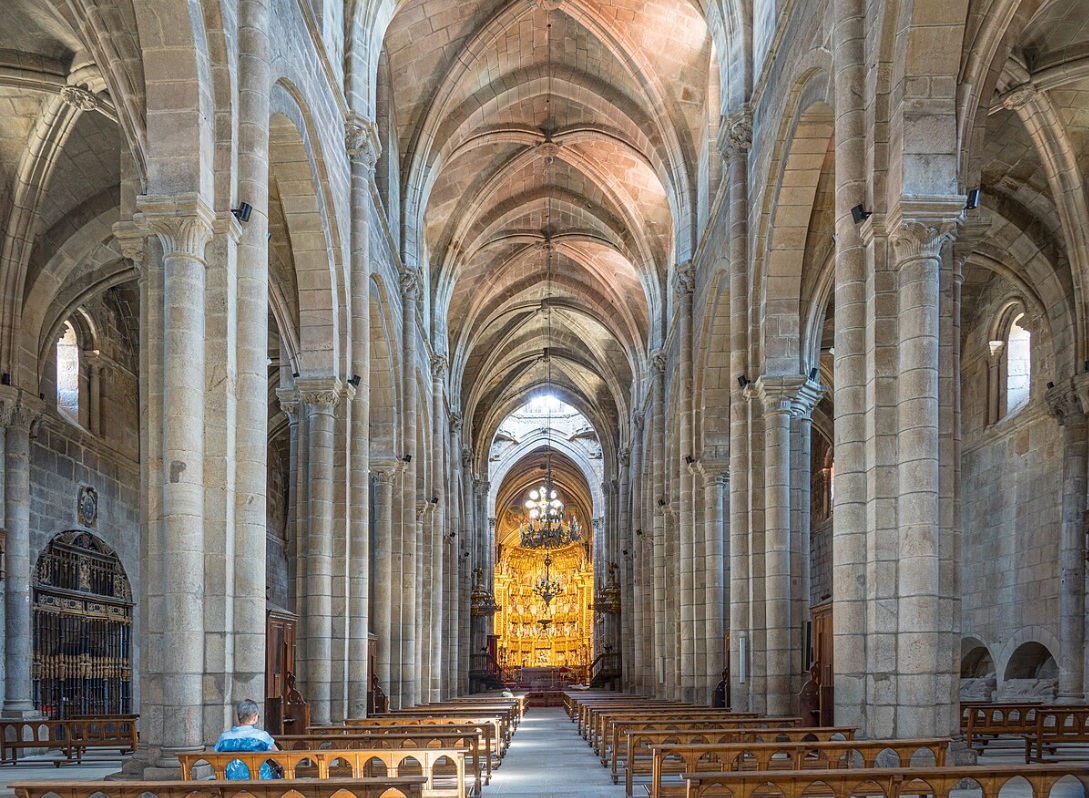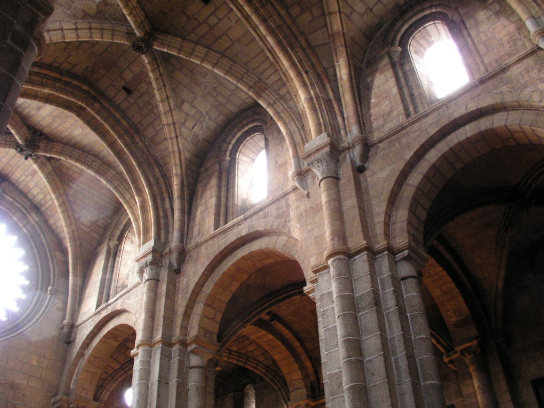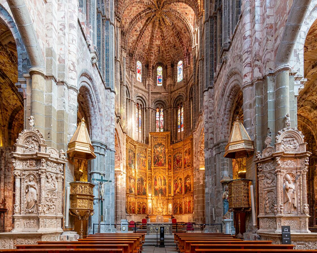Su construcción va desde el 1129 hasta el 1273. La catedral actual es, por tanto, de estilo predominantemente románico. Una de sus joyas más destacadas es el retablo mayor, obra de Cornelis de Holanda, dañado a consecuencia del Terremoto de Lisboa de 1755. La catedral presenta una planta de cruz latina con tres naves, crucero y girola con cinco capillas absidales.