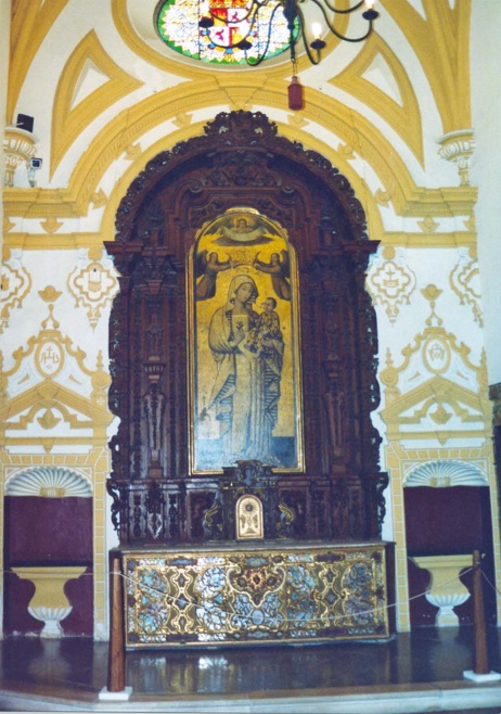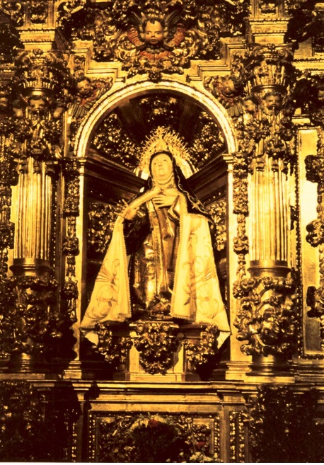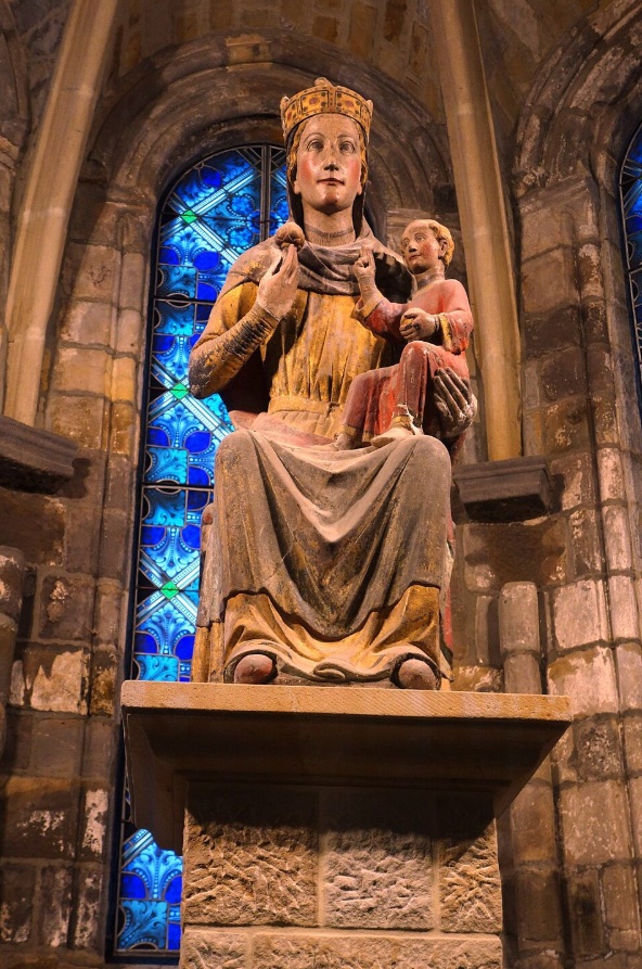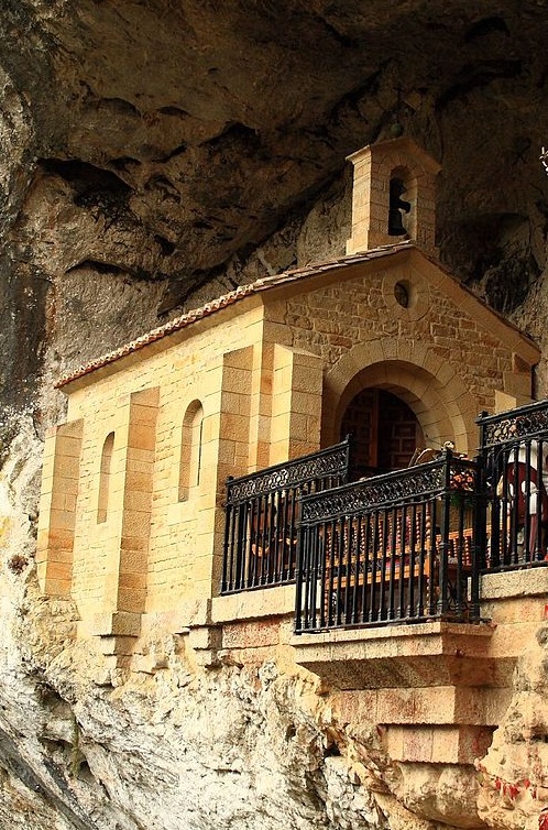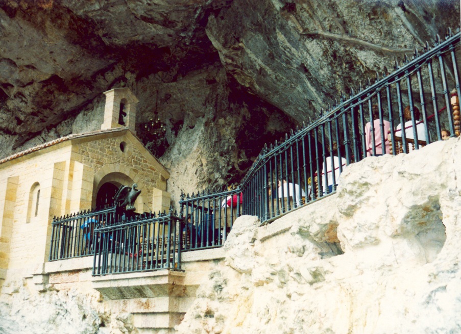 La Virgen de Covadonga, conocida popularmente como La Santina, es una imagen de la Virgen María que se encuentra en la Santa Cueva de Covadonga. La Santa Cueva de Covadonga es un santuario católico situado en las estribaciones del Monte Auseva, que da nombre a la parroquia de Covadonga. Se accede a la cueva a través de una gruta o subiendo 103 escalones que parten desde la zona del estanque.