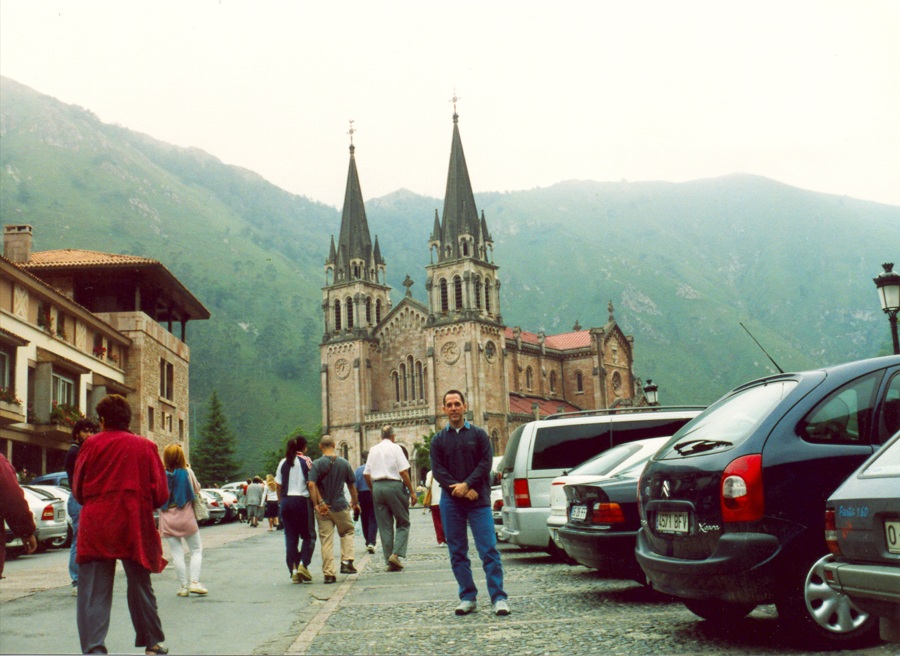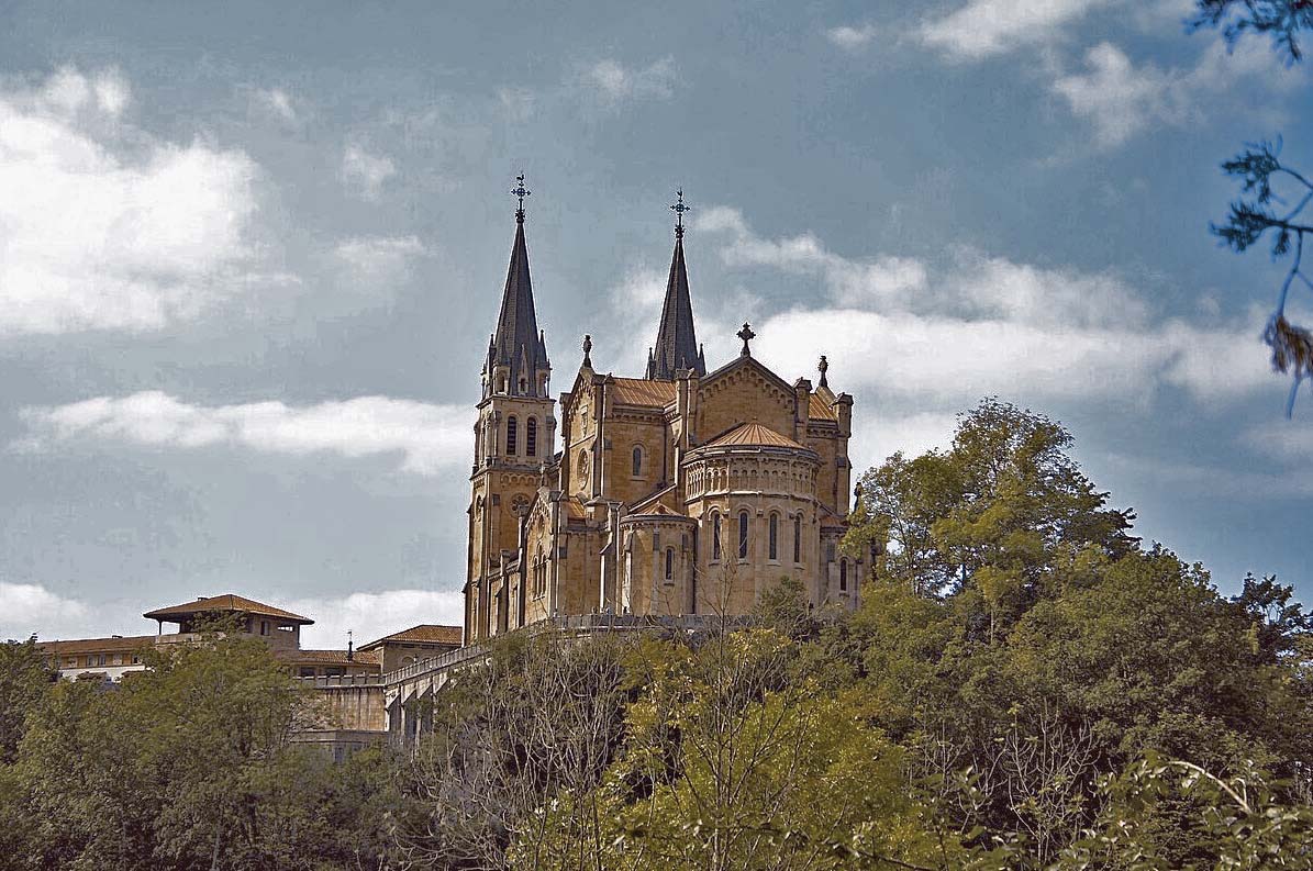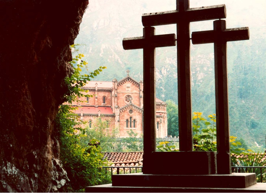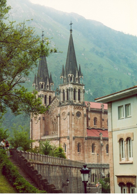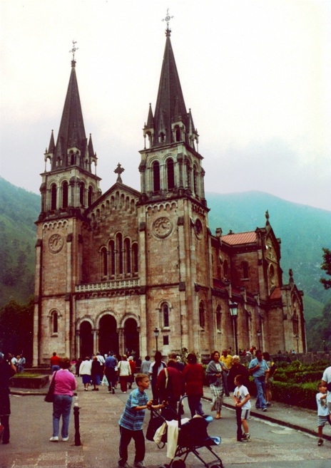 Covadonga se nos mostró luminoso, y muy hermoso. La basílica entre las montañas, y a un lado la gruta donde apareció la Virgen. La basílica de Santa María la Real es un sitio de culto católico situado en Covadonga. Declarada basílica menor el 11 de septiembre de 1901. El templo fue ideado por Roberto Frassinelli y levantado entre 1877 y 1901 por el arquitecto Federico Aparici y Soriano, de estilo neorrománico, construido íntegramente en piedra caliza rosa.