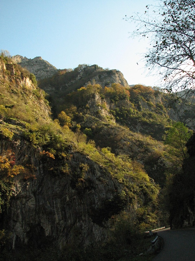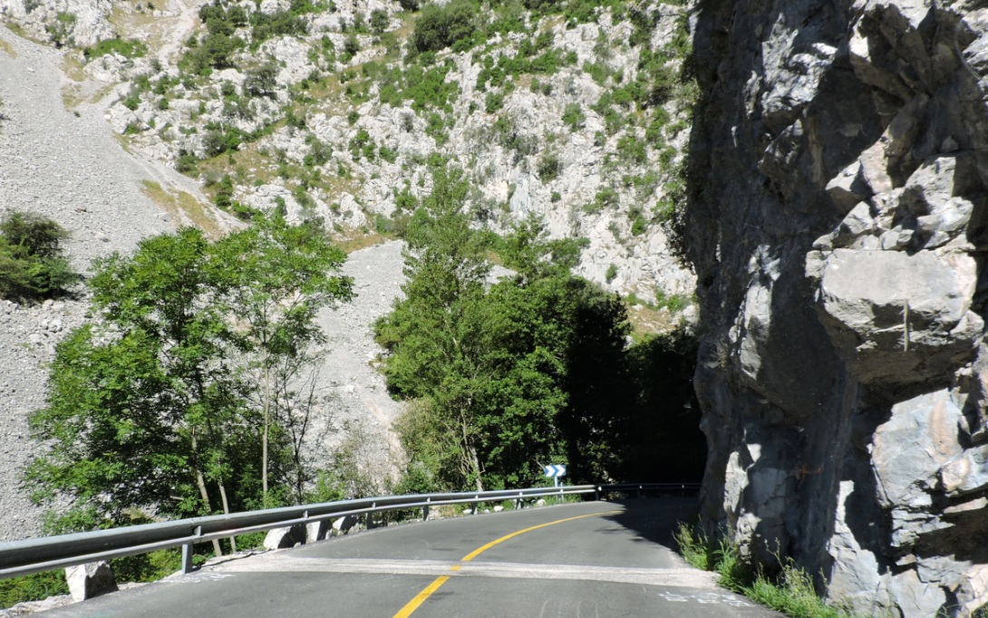 Desde ahí iniciamos el ascenso a los lagos. La carretera se va estrechando, hasta que llega un punto en que parece milagroso que puedan pasar por ahí dos carros, lo malo es que un lado es pared de la montaña, y el otro es precipicio, pero el ascenso, por peligroso que parezca, merece la pena. Covadonga forma parte del Parque nacional de los Picos de Europa.