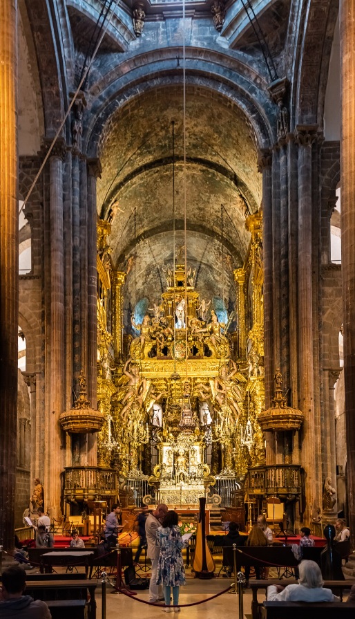 La Santa Apostólica y Metropolitana Iglesia Catedral de Santiago de Compostela es un templo de culto católico. Acoge el que, según la tradición, es el sepulcro del Apóstol Santiago, hecho que convirtió a este templo en uno de los principales destinos de peregrinación de Europa durante la Edad Media a través del llamado Camino de Santiago. Su construcción va desde el año 1075 hasta el 1211. Es de tipo Planta en cruz latina de tres naves, con crucero de tres naves y deambulatorio y combina los estilos Románico, gótico y barroco.