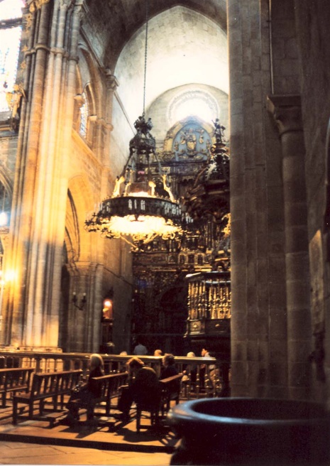 Admiramos esa hermosa Catedral y nos extasiamos con todo lo que en ella se encuentra, nos deslumbramos con el majestuoso altar y nos sorprendimos al ver el botafumeiro, que es un gran incensario, el cual va moviéndose hacia los lados ayudado por unas enormes cadenas, hicimos la cola para hacer el rito de poner la mano y chocar la cabeza tres veces y por último nos sobrecogimos al visitar la sala donde descansan los restos del Apóstol.