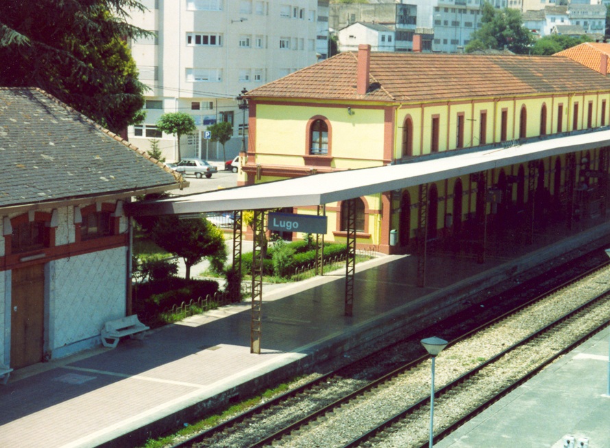 La estación de tren de Lugo se inauguró el 10 de octubre de 1875. La estación es paralela a la Ría de Avilés y consta de un edificio principal y un anexo con una pasarela al andén del ferrocarril de vía estrecha servida por FEVE. Tiene 2 plataformas para la línea de vía ancha y una plataforma de isla para la línea de vía estrecha.