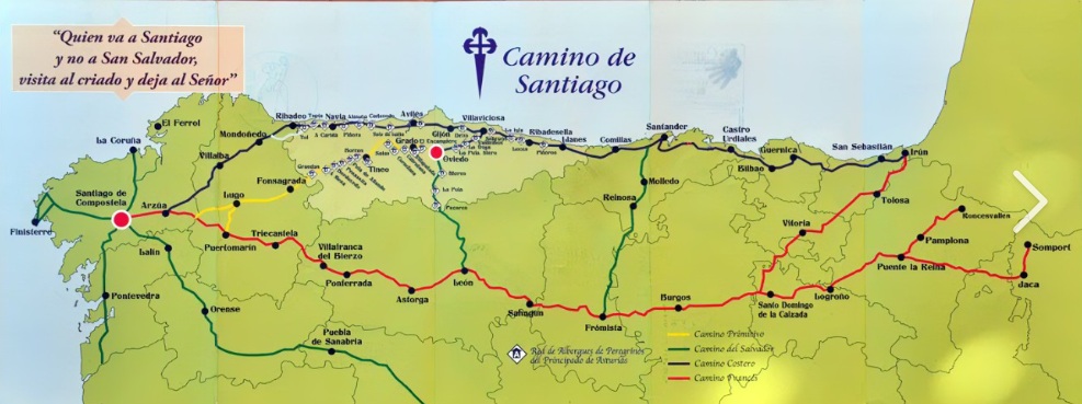 Ruta a Santiago que hicimos en el viaje, claro se añadieron otras ciudades de España que no habíamos visitado anteriormente. Esto se hizo en 15 días, un itinerario bastante ambicioso, pero con buena planificación, se puede hacer.