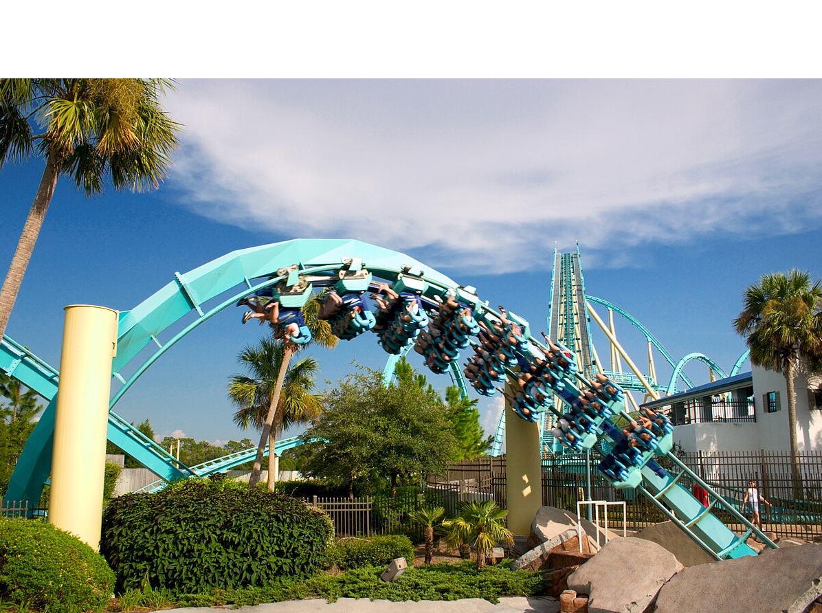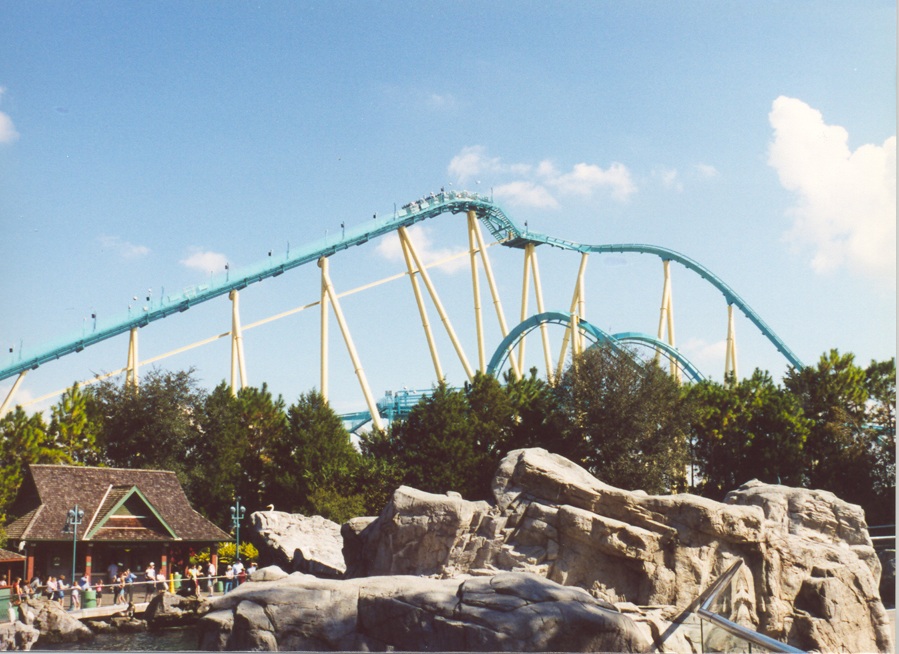 Vamos directamente al SeaWorld Theater, allí seria bueno ya que podemos tener una buena vista del parque y nos podemos orientar mejor. Vamos ahora a Kraken, esta montaña rusa debuto en el verano del 2000, es una de las mas altas, sus siete vueltas, prácticamente forman una G, 149 pies de altura y tan rápida como 65 millas por hora, duración 6 minutos intensos.