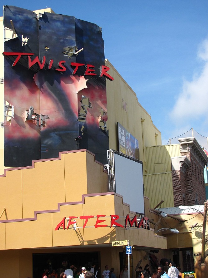 Caminaremos al otro extremo del parque para ver Twister... Ride it Out, antes de comenzar veremos una explicación de los tornados y luego pasamos a un teatro, en donde de pie, veremos como cambia el clima, y hasta sentimos el viento y entraremos dentro de un tornado, el ruido puede llegar a unos 110 decibeles, dura unos 15 minutos.