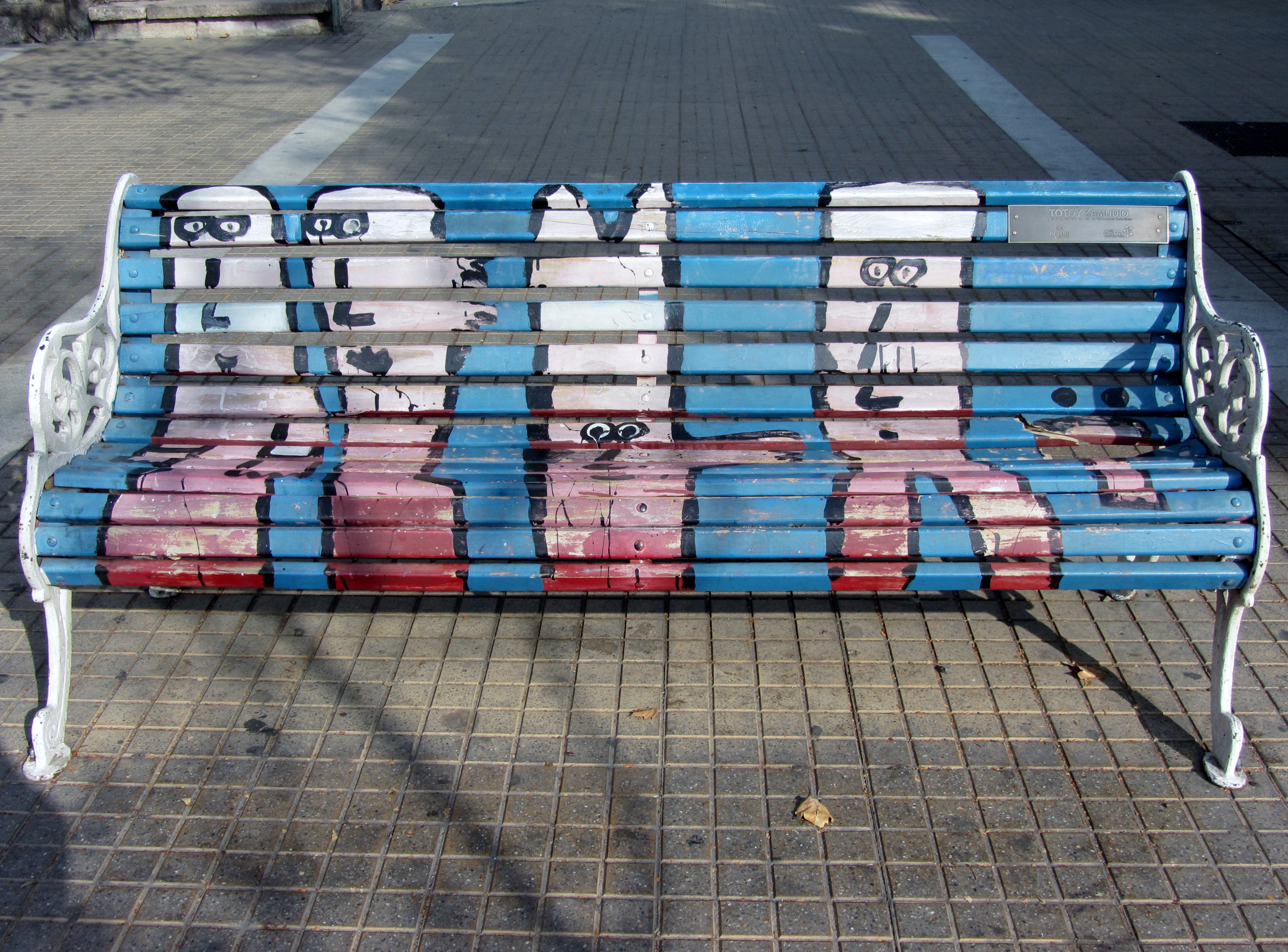 Me encantaron los bancos con pinturas de famosos, este es de Totoy Zamudio