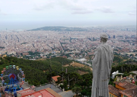 el Mar Mediterráneo, la montaña de Montjuic y el Tibidado, -