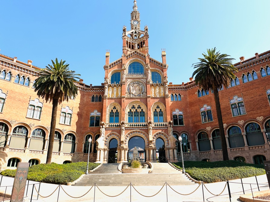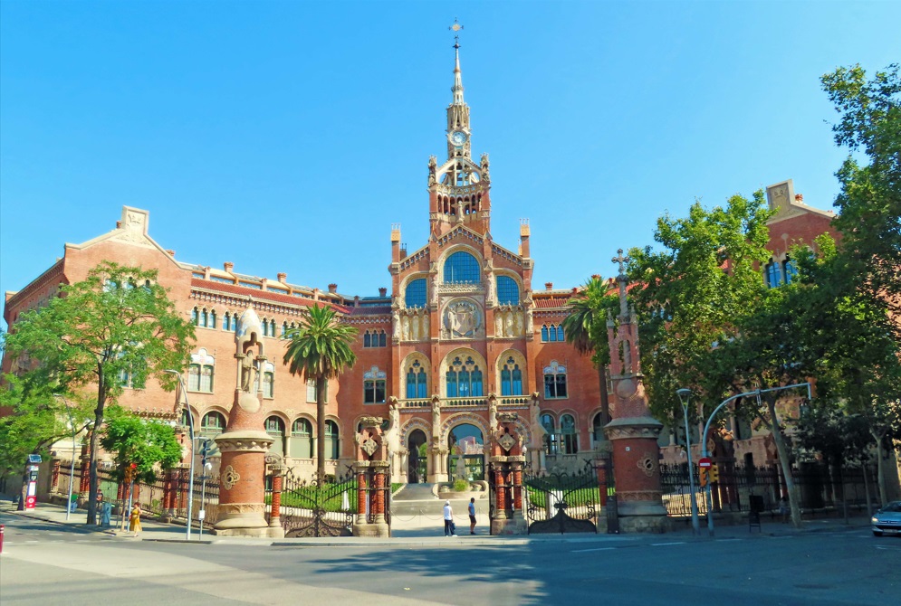 Otra maravilla modernista de la ciudad, el Hospital de la Santa Creu i Sant Pau, un complejo de edificios hospitalarios diseñado por el arquitecto Lluís Domènech i Montaner y su hijo, que es otro de los lugares de Barcelona declarados Patrimonio de la Humanidad y por el que te recomiendo dar un paseo por su gran plaza central y entrar en alguno de sus edificios modernistas más interesantes.