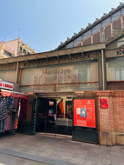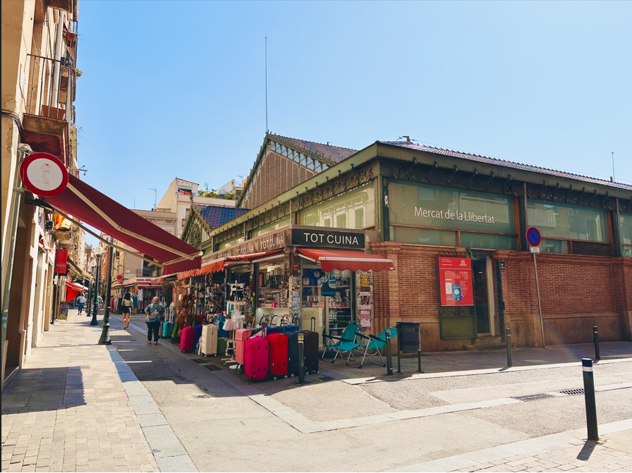 Mercat de la Llibertat - Mercado cubierto con variedad de puestos que venden fruta fresca, vegetales, carnes, pescados, quesos y más. El proyecto definitivo fue presentado al Ayuntamiento en 1888, la inauguración oficial se realizó el 19 de diciembre 1893. La estructura del mercado era de hierro, como también lo fueron los elementos de la cubierta.