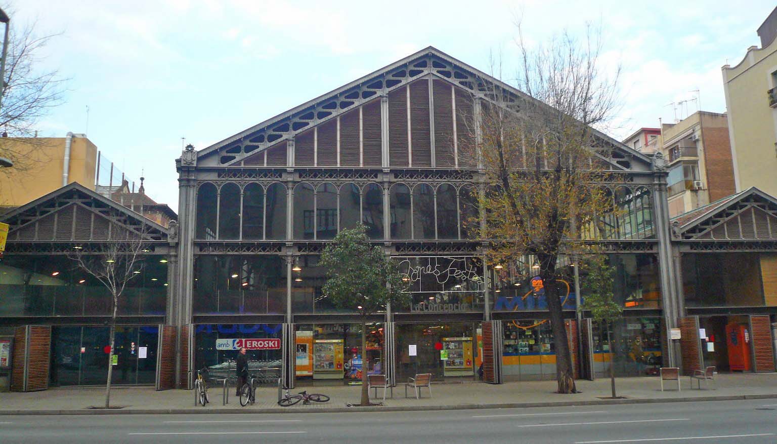 Mercat de la Concepció - Mercado interior remodelado del siglo XIX con techo de tejas, carnicerías y puestos de productos agrícolas. Hablar del origen y la historia del Mercado de la Concepció, nos lleva ineludiblemente a hablar del origen y la historia del barrio dónde se encuentra: el Eixample. Hasta principios del siglo XIX la ciudad de Barcelona se ubicaba, de manera más o menos suficiente, en las murallas que la delimitaban, pero con el inicio de la industrialización, aquel espacio urbano quedó pequeño para poder albergar en él las nuevas fábricas y el crecimiento de la población que en aquella época tuvo lugar. El mercado de la Concepción se construyó en 1888 en el centro de Barcelona, la tradición artística del hierro en Cataluña tiene orígenes en la forja catalana, que llegó a su máximo esplendor en los siglos XVII y XVIII.