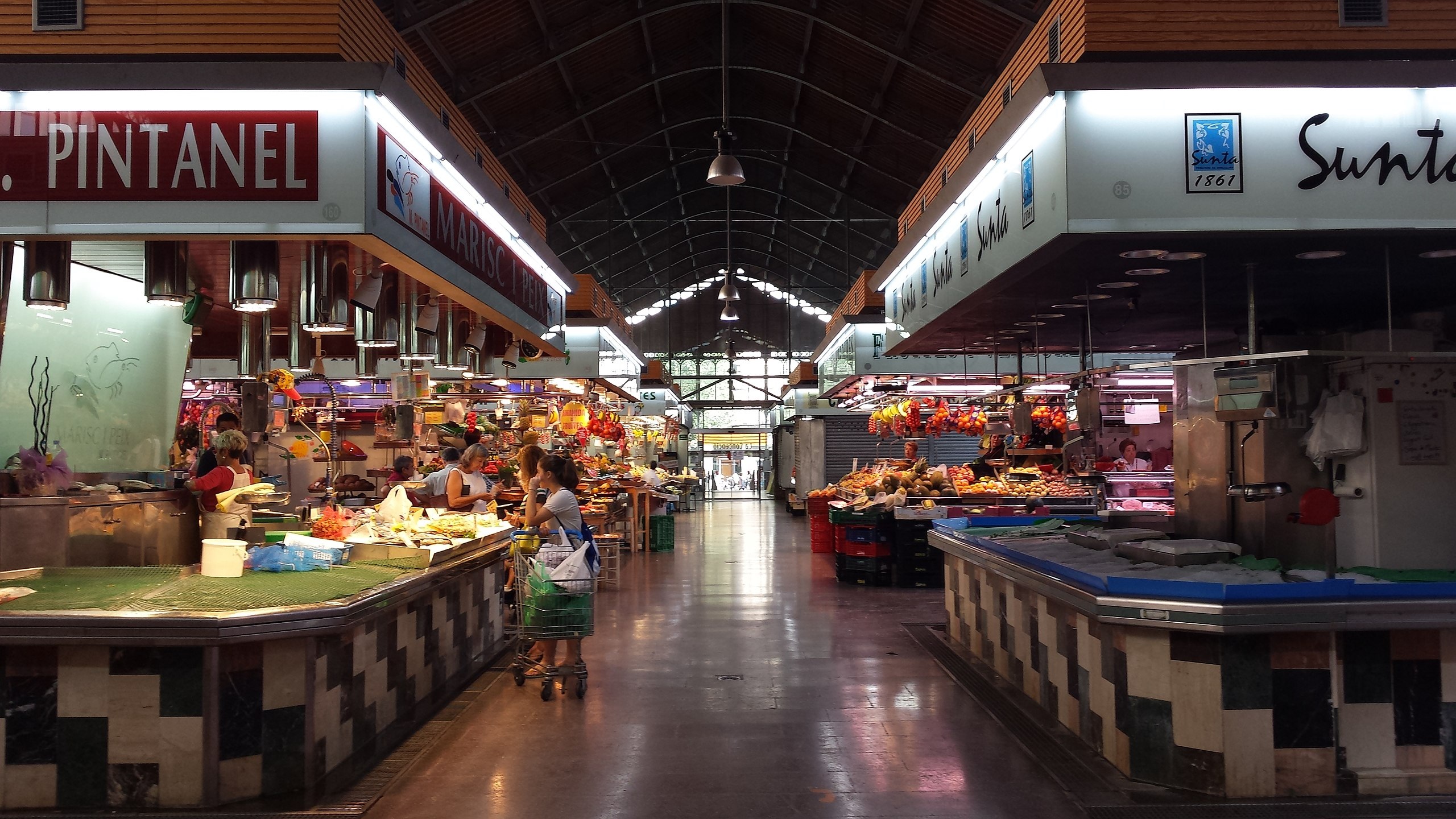 Mercado del Ninot - Mercado restaurado con pescado, hortalizas, carnes, bares y restaurantes de degustación en espacio luminoso. El nombre del Mercado del Ninot es de origen popular y está ligado al mascarón de proa que presidía la puerta de una taberna muy conocida de la zona a finales del siglo XIX. Este establecimiento era muy concurrido porque vendía el vino a muy buen precio. Pronto se convirtió en el centro social del barrio, un local que salía a menudo a la prensa por todo tipo de crímenes y escándalos. El nuevo mercado mantiene la estructura metálica previa, formada por tres cuerpos con el central más elevado, pero incorpora importantes cambios mejorar la experiencia de comerciantes y visitantes.
