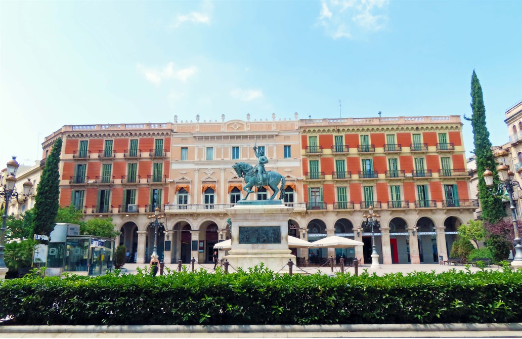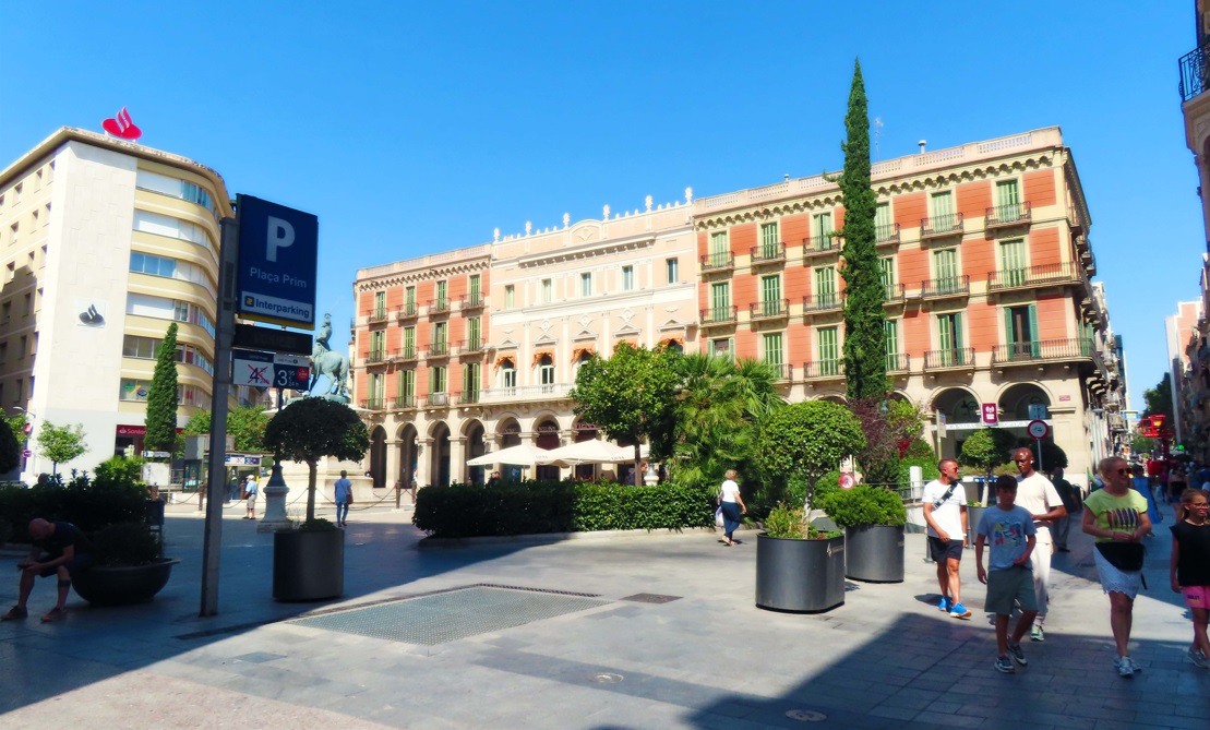 La Plaza Prim es hermosa, donde además de la estatua ecuestre del general Juan Prim y Prats podemos percibir los contrastes de sus cuatro lados, desde el sur donde se ubicaba el Hotel de Londres, y que hoy es un edificio de oficinas, hasta el norte donde se encuentra el antiguo casino o teatro Fortuny, pasando por las casas antiguas con tiendas del este y las entidades bancarias modernas del oeste.