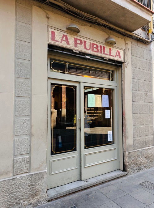 La Pubilla, es uno de los locales preferidos de los barceloneses para ir a hacer un menú de mediodía. Buenísimo y a un precio bastante razonable, alrededor de los 15 euros. Como dato curioso, La pubilla era, en Cataluña, la hija mayor destinada a recibir una herencia en ausencia de un hijo varón. Surge en la Edad Media por la necesidad de evitar la división del patrimonio familiar y mantener la economía familiar, basada entonces en la agricultura.