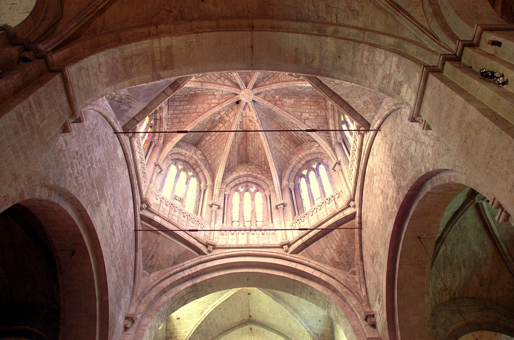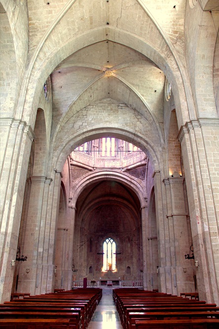 En sus inicios el Monasterio estaba separado de la ciudad por una muralla, de la que ahora solo se conservan pequeños restos. En sus mejores épocas habían unos 30 a 35 monjes. De su fachada principal, que data de la primera mitad del siglo XIV, destaca sobre todo su gran rosetón. Se trata del más grande de todo Catalunya y si lo miramos fijamente nos damos cuenta a su gran parecido con el de Notre Dame de París, que fue su fuente de inspiración.