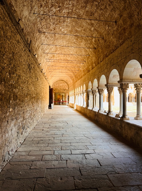 Aunque todo el edificio en su tiene su encanto, la joya de la corona es su claustro románico del siglo XII, obra del escultor Arnau Cadell y que casi por unanimidad está considerado como el mejor claustro románico de Europa, es una belleza. Mientras recorres este claustro, se pueden ver hasta 144 capiteles que son auténticas obras de arte medieval. Estos capiteles nos muestran desde diversas escenas de la vida cotidiana de los monjes del monasterio hasta escenas bíblicas como por ejemplo la referente al Arca de Noé que en lo personal, me encantó.