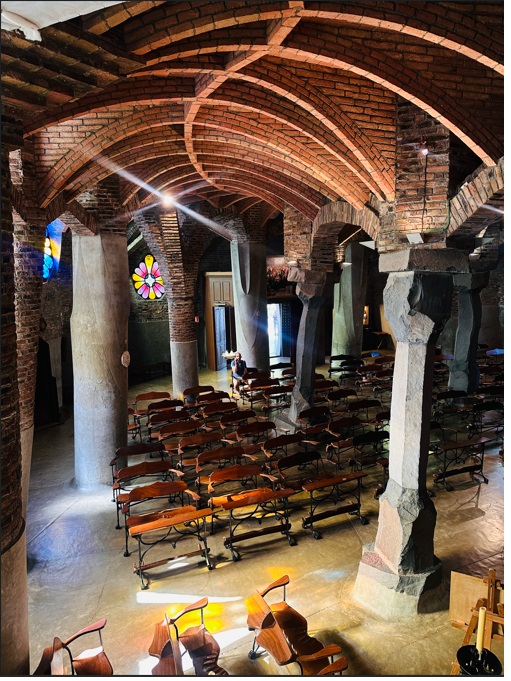 Lo más destacado a visitar es la iglesia, pero como otras obras del genio Gaudí, nunca se llegó a acabar tras 8 años de obras. La iglesia fue el gran proyecto de la Colonia, quizás demasiado ostentoso. De las 2 naves que estuvieron planeadas, únicamente la nave inferior se llegó a acabar, que es la que se puede visitar. Es una iglesia algo peculiar: Suelo de cemento, bancos con formas extrañas, columnas torcidas, materiales inusuales en la construcción, ventanas de colores.