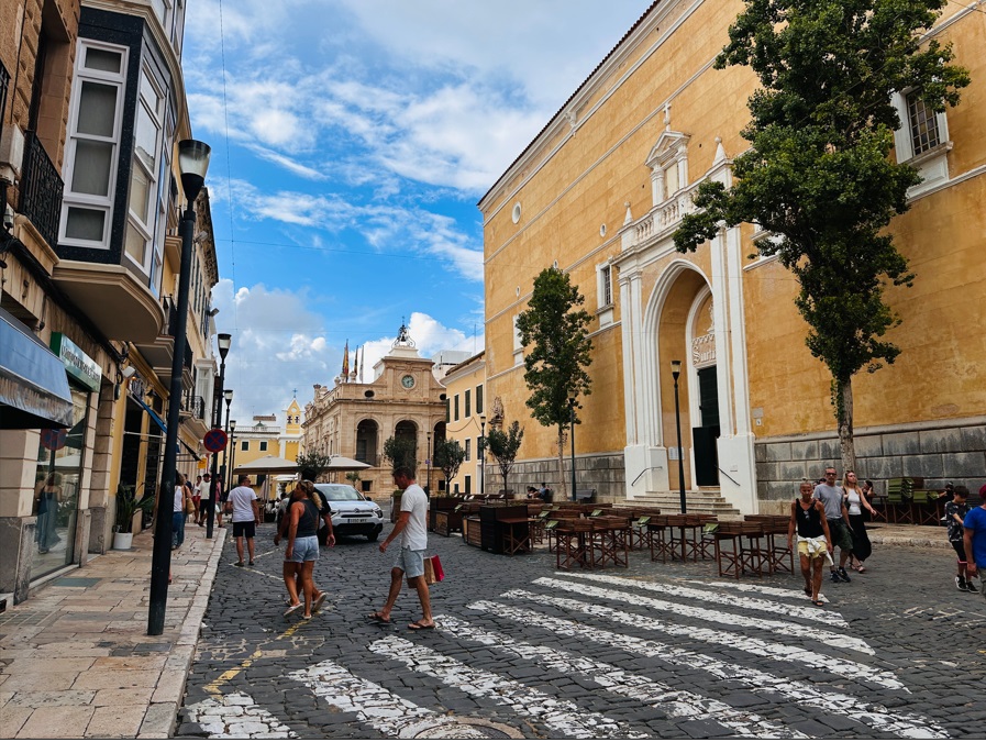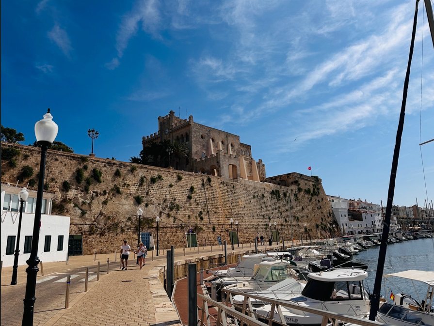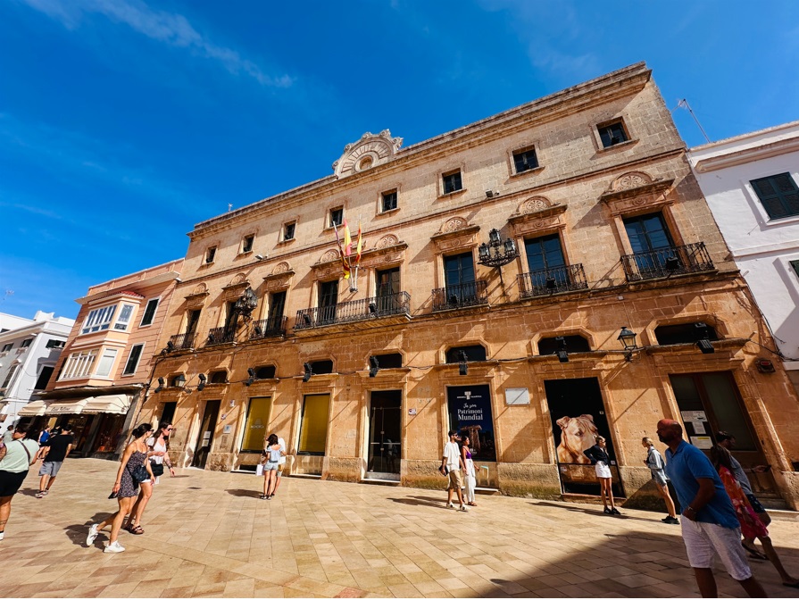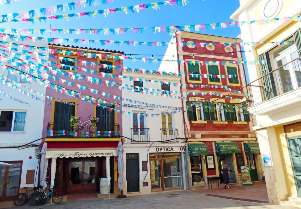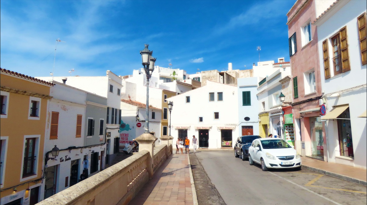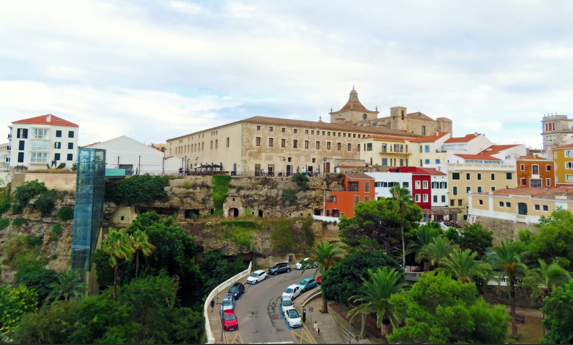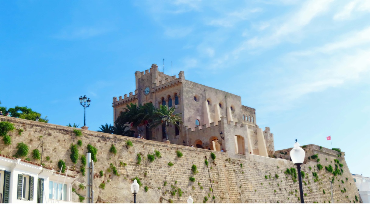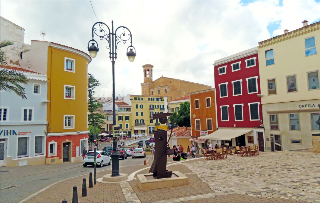 Iglesia de Santa María, con un increíble órgano del S. XIX, situada justo al lado del Ayuntamiento de Mahón. El reloj del ayuntamiento lo trajo de Inglaterra en 1731 el gobernador inglés. Plaza del Bastió y Pont de Sant Roc. Restos de la antigua muralla de la ciudad. Todo la zona tiene un montón de terrazas y bares.