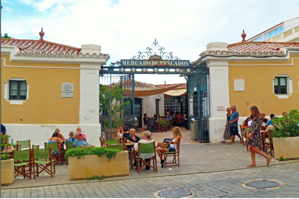 Mercat Del Peix. Está justo en frente del anterior. Merece la pena comer aquí, ya que está formado por un montón de puestos de comida y bebida, pudiendo escoger lo que quieres de cada uno y comer libremente en las mesas. Desde la parte de atrás tiene vistas al puerto. Al inicio de la Calle Ses Voltes. En el mismo mirador están las terrazas del bar del mercado del Claustro y del Bar Mirador.