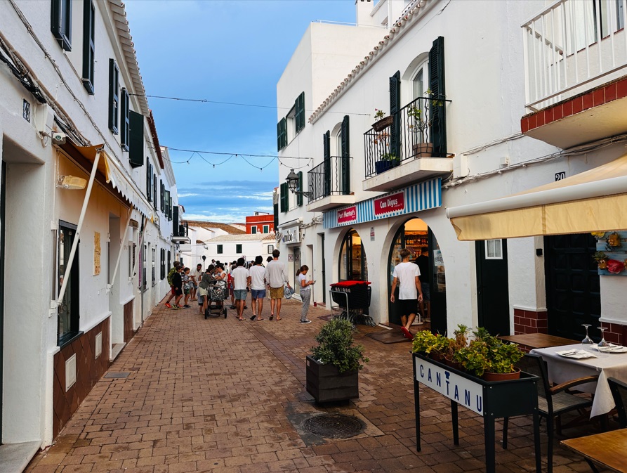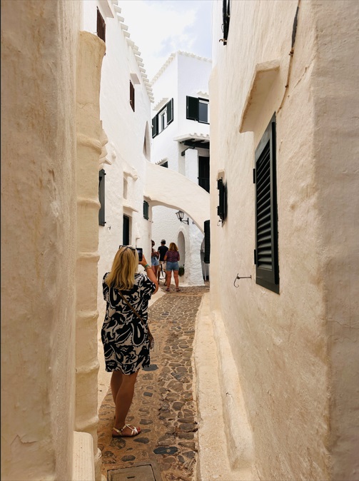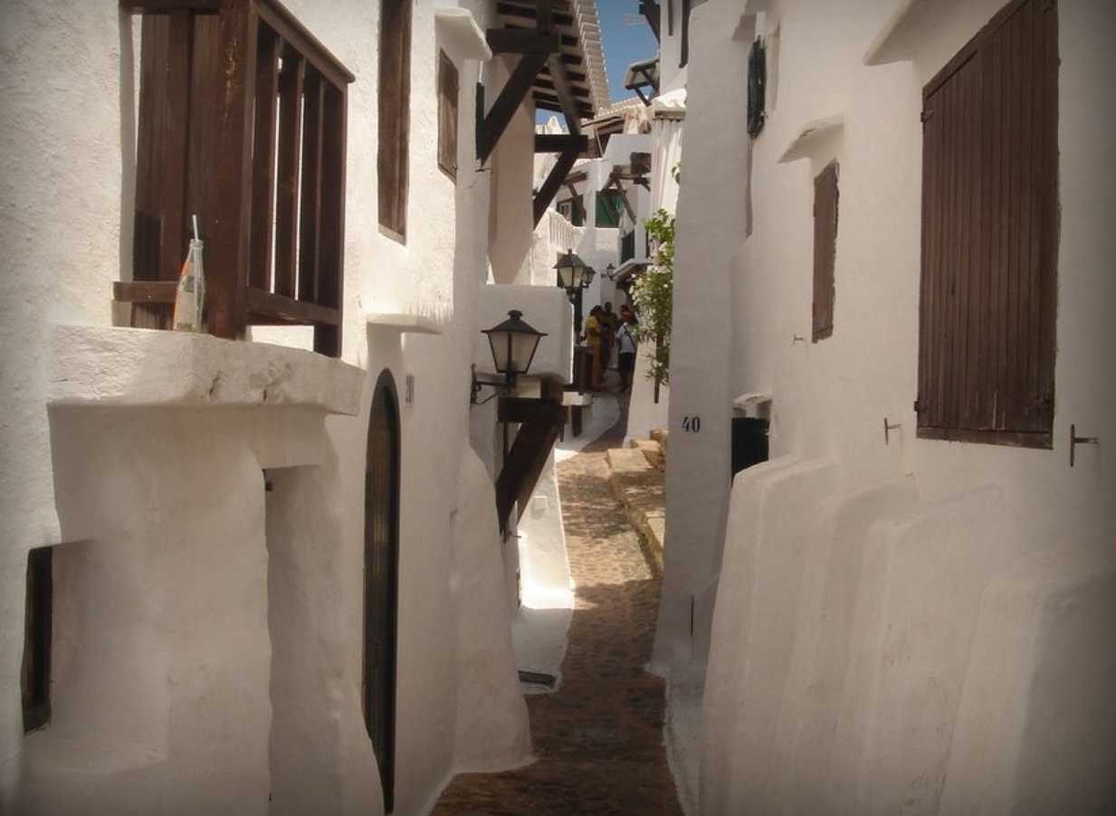 Visitar el pueblo más bonito: Binibeca. Si hay un pueblo que debes visitar sí o sí en Menorca ese es Binibeca. Es uno de esos lugares más propios de países como Grecia que de aquí. Sin duda alguna es llamativo por el color blanco de sus casas, pero sobre todo por el entresijo de calles estrechas, a modo de laberinto, por el que debemos perdernos. Es uno de los lugares más transitados de la isla de Menorca, debido a sus casas blancas y encaladas, y a sus calles estrechas formando un laberinto.