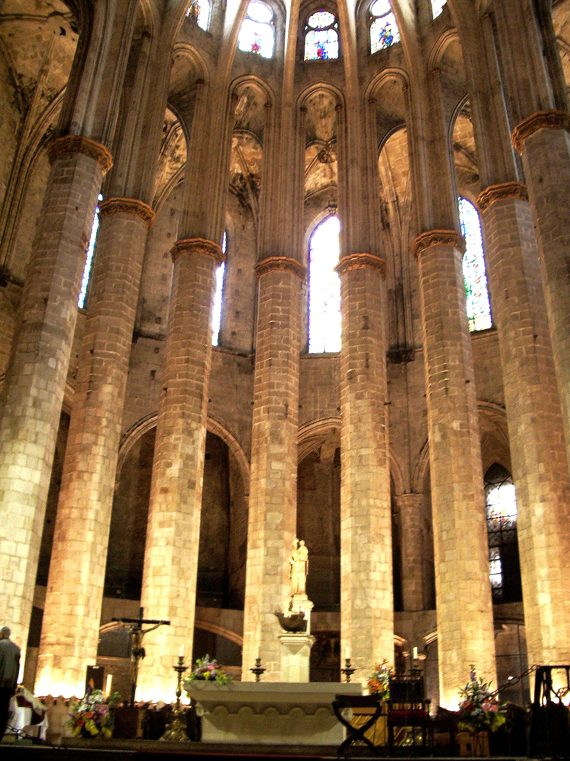 Santa María del Mar es un templo gótico edificado en tres naves de 1329 a 1383 y una de las iglesias más significativas de Barcelona. En la misma época se concluyó la catedral de Barcelona, por orden del alto clero y la nobleza; en cambio en la basílica de Santa María del Mar los responsables de la obra, el maestro Ramón Despuig y don Berenguer de Montagut- acordaron que eran los feligreses del puerto y la Ribera -quienes habían aportado los gastos- los únicos responsables de la construcción del templo. Empresa en la que se implicaron todos los vecinos, siendo vital el trabajo de los bastaixos encargados de transportar las piedras procedentes de la cantera real de Montjuic hasta la plaza del Born, cargándolas a sus espaldas. Una hazaña que se recuerda en la puerta principal de la basílica, como póstumo homenaje.