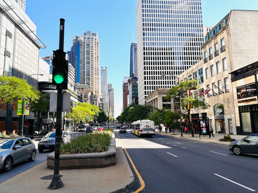 Michigan Avenue, en pleno bullicio comercial. Esta zona se