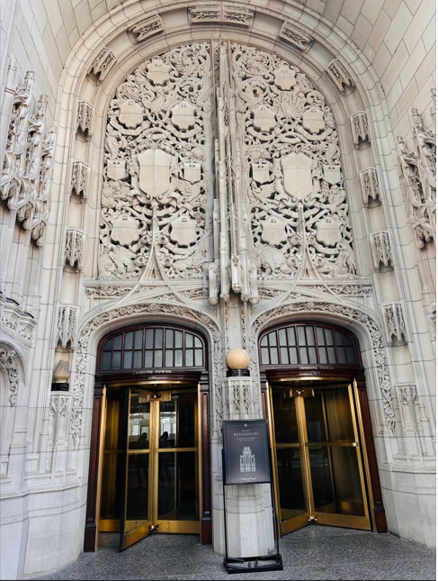 Nos detenemos en el Intercontinental Chicago Magnificent Mile es un hotel en Chicago. Caminando son 12 minutos. La torre histórica, o "Torre Sur", mide 471 pies (143,6 m), edificio de 42 pisos que se completó en 1929 originalmente como sede del Medinah Athletic Club. El edificio del Medinah Athletic Club estaba destinado a combinar elementos de muchos estilos arquitectónicos: asirio antiguo, morisco, egipcio y griego.