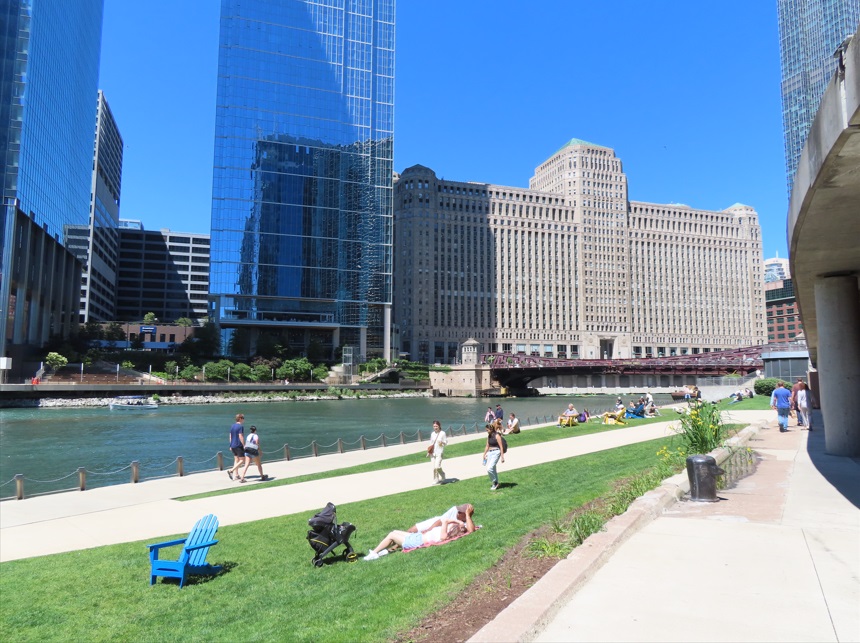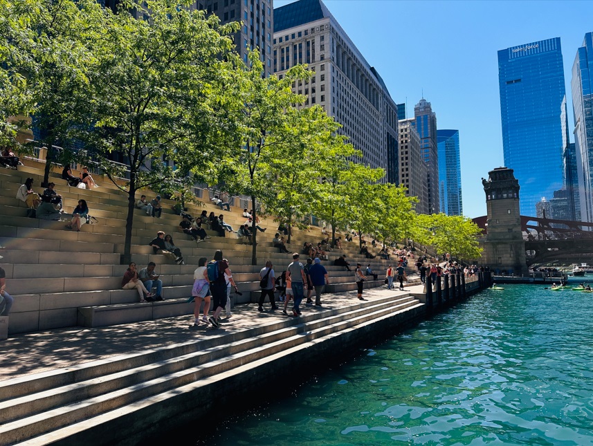 The Riverwalk. Se trata de un agradable paseo peatonal que recorre parte de la orilla del río Chicago y está repleto de espacios donde sentarse, restaurantes, bares y terrazas cerca del agua.