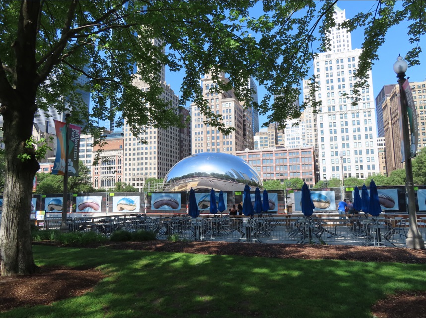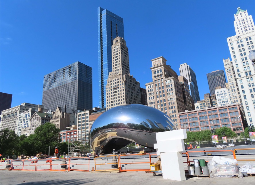 The Bean (Cloud Gate), una de las esculturas más populares y fotografiadas de la ciudad. Este parque lo encontrarás en la céntrica zona del Loop, cerca del lago Míchigan (entre la Avenida Míchigan, Columbus Drive y las calles Randolph y Monroe). Esta especie de gota gigante de acero inoxidable refleja el característico paisaje urbano de Chicago, lleno de rascacielos, por lo que siempre hay mucha gente haciendo fotos. Es obra del escultor británico Anish Kapoor, la Cloud Gate se inspira en el mercurio líquido.