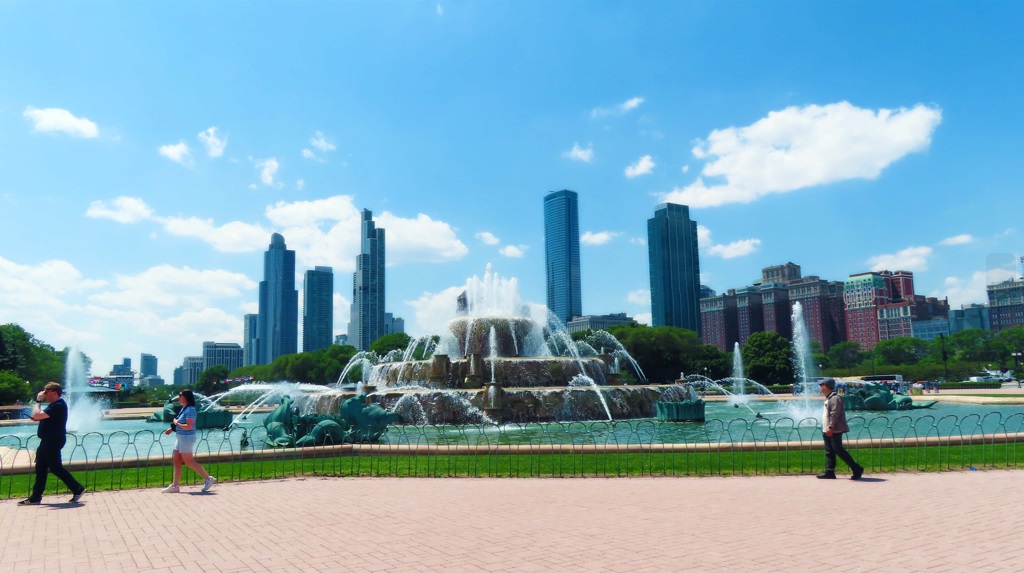 Grant Park y allí se encuentra otro de los principales emblemas de Chicago, la Fuente de Buckingham. No es tan curiosa como la Crown Fountain del Millenium Park, pero es más bonita. ¡Impresiona más! Está inspirada en la Fuente de Latona, ubicada en el Palacio de Versalles de París. Verla con los edificios del Loop al fondo es algo muy recomendable que hacer en Chicago. La fuente está abierta de abril a octubre.