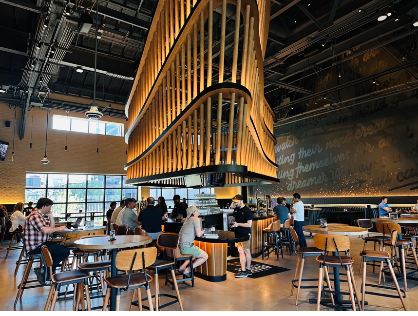 Para cerrar este gran día, iremos al segundo templo cervecero - Centennial Crafted Beer & Eatery. Cuentan con 56 grifos con una selección de 36 cervezas artesanales rotativas. El menú enfatiza los ingredientes ahumados, a la parrilla y al horno de leña, y cuenta con un programa de embutidos caseros. Pasaron seis años para dar nueva vida al edificio de 1888. La planta baja exhibe un barra de madera y la mesa comunitaria, ambas construidas a partir de las vigas originales del piso extraídas del edificio.