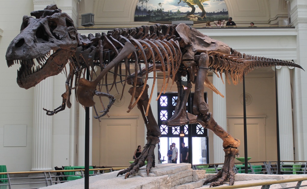 Museo de Historia Natural de Chicago, El The Field Museum, este inmenso museo de historia natural y antropología está compuesto por más de 30 exposiciones permanentes sobre la historia de la civilización humana, incluyendo diferentes culturas. De todos modos, su fama se debe a la interesante exhibición de dinosaurios: en el Field Museum podrás ver las muestras de esqueletos más importantes de todo el planeta, como el mayor esqueleto de Tiranosaurio Rex que se conserva y se le conoce como SUE, desde el año 2000, una de las principales atracciones con la que cuenta el museo es Sue, el esqueleto de Tyrannosaurus más grande y completo que se ha encontrado, además de uno de los mejor preservados.