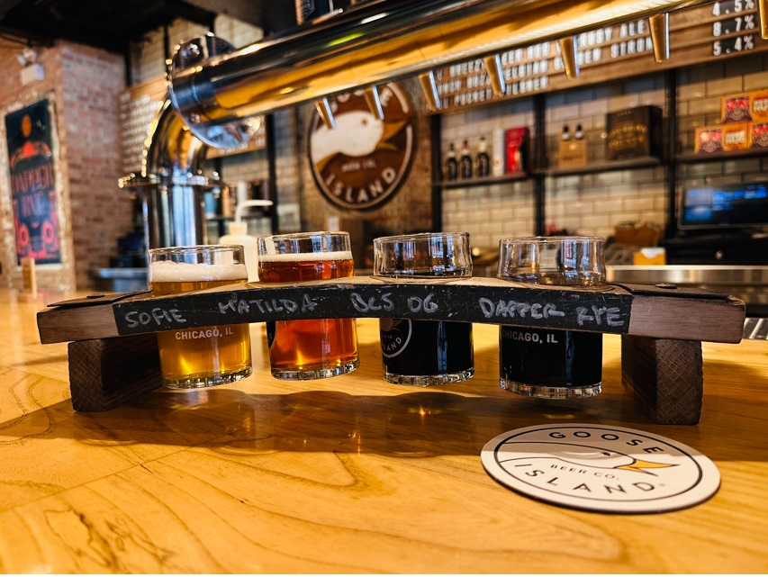Goose Island Taproom. Situado en West Town, en la esquina de Fulton y Wood, el Goose Island Taproom sirve cervezas rotativas e innovadoras hechas en Chicago, para Chicago. The Taproom abrió sus puertas en 2015 para llevar las cervezas elaboradas en el edificio directamente al vecindario. Junto con clásicos como Honkers Ale y 312 Wheat Ale, los cerveceros ponen cervezas experimentales de barril con regularidad. Desde 1988, Goose se dedica a hacer cerveza de calidad para todas las personas y todas las ocasiones. En 1992, Greg Hall quería elaborar algo verdaderamente único para el lote número 1.000 de la cervecería, solo necesitaba inspiración. Luego, un encuentro casual entre Greg y Booker Noe de Jim Beam llevó a Goose Island a adquirir los barriles de lo que se convertiría en la primera cerveza envejecida en barril de bourbon del mundo.