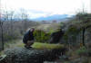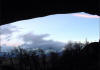 tres cavernas y un conglomerado rocoso , la mas grande de estas cavernas