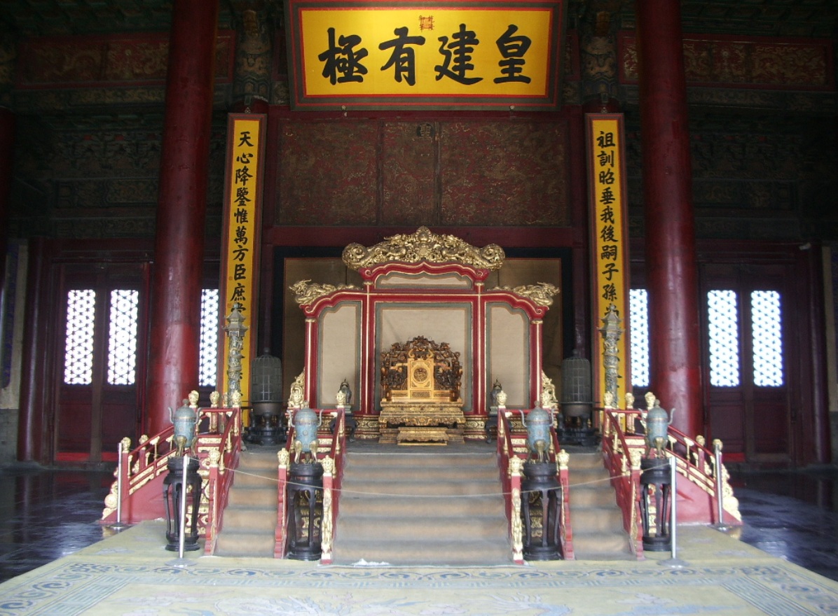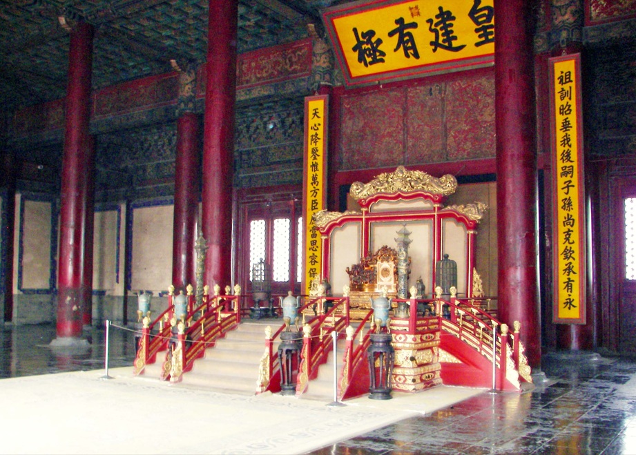 El Salón de la Armonía Suprema es el de mayores dimensiones, pues alcanza una altura de treinta metros sobre el nivel de la plaza que lo rodea, además de ser el centro ceremonial del poder imperial y la estructura de madera más grande de toda China. Tiene nueve crujías de ancho y cinco pisos de altura, los números nueve y cinco que están simbólicamente conectados a la majestad del emperador.