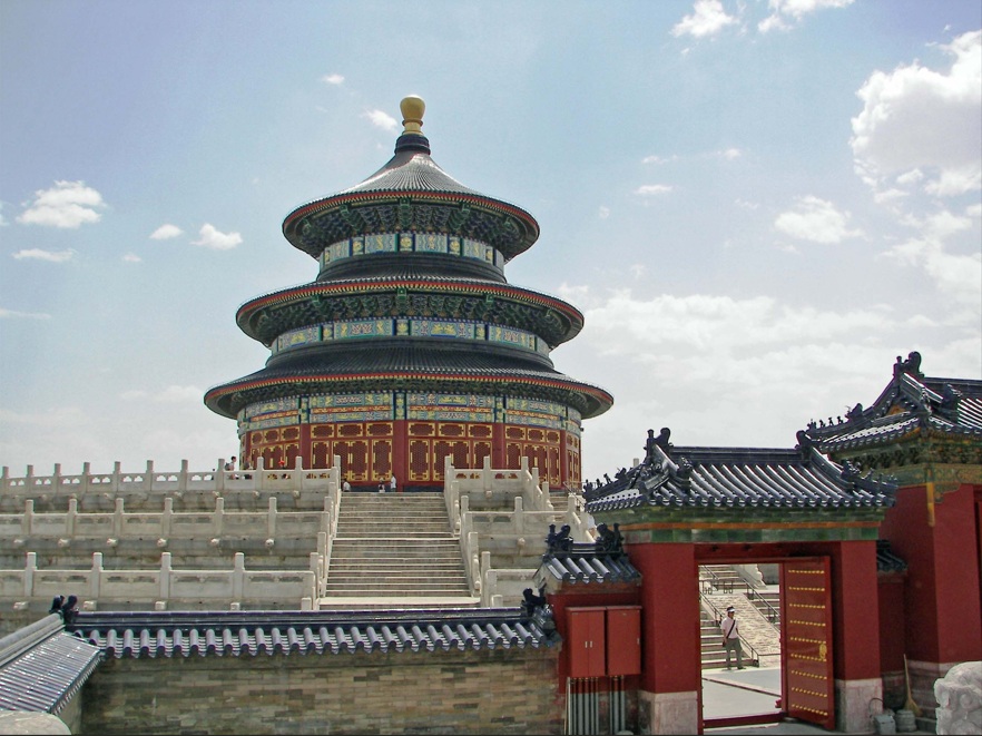 En nuestro ultimo día en esta magnífica ciudad, aprovechamos para conocer el famoso Templo del Cielo, obra maestra construida en 1420, que debe su nombre a que era precisamente en este lugar donde los emperadores feudales, quienes se hacían llamar a si mismos "Hijos del Cielo", durante los días del solsticio de invierno y tras salir del Ciudad Prohibida en medio de una gran ceremonia, oraban y realizaban sacrificios rituales por la obtención de buenas cosechas. Es precioso, como todas las edificaciones históricas chinas.