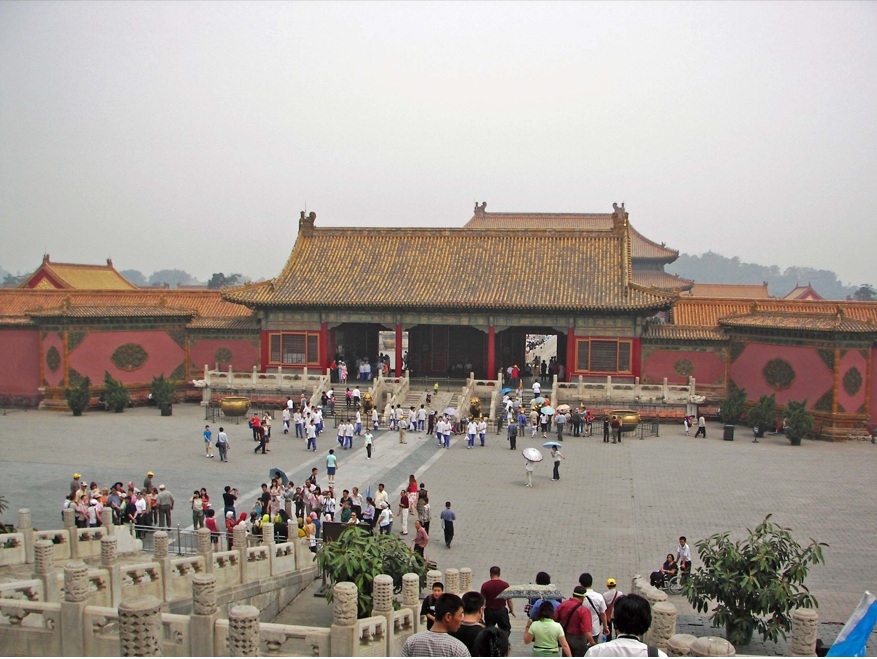 Y llegamos a La Ciudad Prohibida (el antiguo palacio de los emperadores chinos). La ciudad prohibida esta tal y como aparece en las películas. Es una gran área orientada de Norte a Sur y rodeada de agua en los laterales. Es impresionante la cantidad de construcciones que hay, además de la historia que encierra este lugar. Durante casi quinientos años, desde la dinastía Ming hasta el final de la dinastía Qing, fue la residencia oficial de los emperadores de China y su corte, así como centro ceremonial y político del Gobierno chino.
