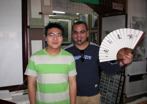 pergamino con mi nombre escrito en chino, claro los tres compramos algo de eso