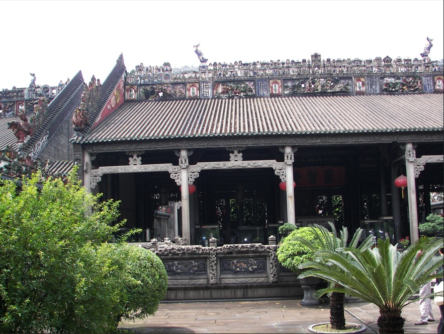 Casa de la familia Chen, conocido como "academia" o "templo" de la familia o clan Chen. Este complejo de edificios y jardines fue construido entre 1890 y 1894 con donaciones de las familias Chen de toda la provincia de Guangdong y del extranjero. (Chen es un apellido muy común en Guangdong).