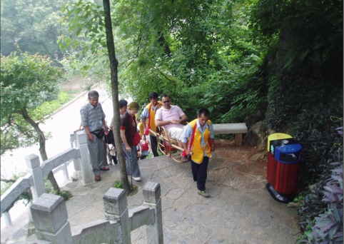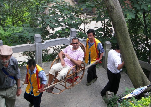 Guilin, gruta de Las Flautas de Caña, Javier usó esta manera tan peculiar de subir. |