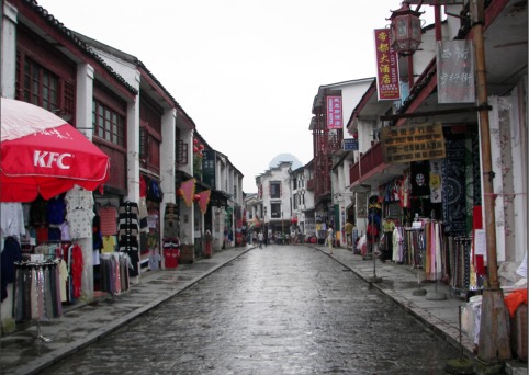 Yangshuo, al final de la navegación, es un pueblo típico en el que las calles son una sucesión colorida de negocios de ropas, artesanías. |