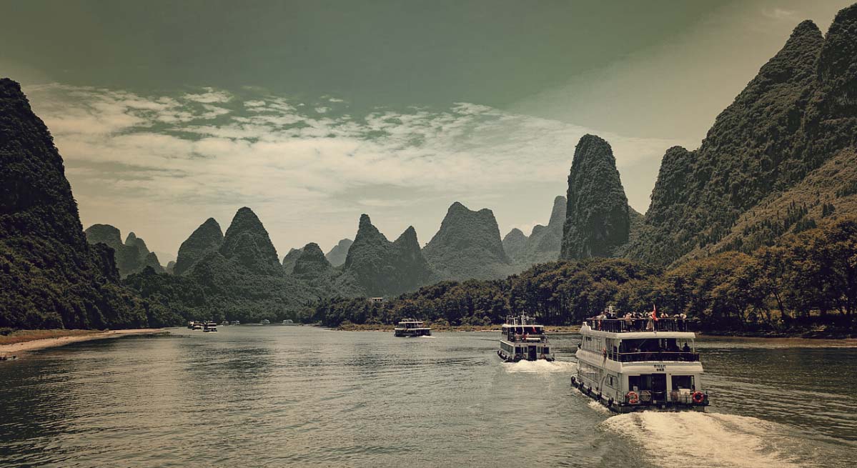 El río Li. El 12 de febrero de 1996 la «Zona pintoresca del río Lijiang en Guilin» fue inscrita en la Lista Indicativa de China del Patrimonio de la Humanidad, en la categoría de bien natural. De admirar el espectacular paisaje en el que hay una gran cantidad de reliquias culturales: más de dos mil esculturas de piedra dispersas, el canal Lingqu de la dinastía Qin, el paso Guyanguan de los periodos Qin y Han y la Ciudad Imperial de las dinastías Ming y Qing.