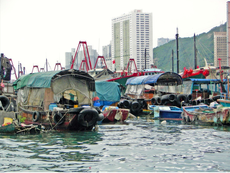 Muelle de pescadores Aberdeen. El puerto de Aberdeen sitúa en el lado sur de la isla de Hong Kong, al otro lado del pico Victoria del núcleo urbano de Hong Kong. Aberdeen, que era famoso por ser el lugar donde los pescadores de Hong Kong vivían en las décadas de 60 y 70, es la zona poblada más grande de la isla de Hong Kong. Ahora, la zona del puerto es un destino de ocio para los ciudadanos de Hong Kong.