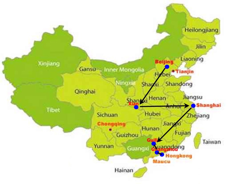 recorrimos por 15 días las siguientes ciudades: Xian, Shangai, Guilin, Guangzhou