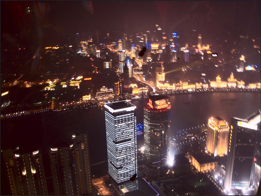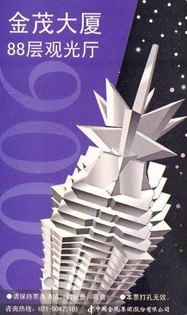 Otra experiencia maravillosa fue ir al Edificio Jinmao. Es el más alto de China y tercero del mundo, con sus 88 pisos, y su parte superior, con forma de pagoda, combina el estilo clásico chino con la era atómica. El observatorio es una verdadera experiencia, pudimos tomar muchas fotos nocturnas desde allá arriba. Las secciones de la pila de rascacielos en la parte superior del otro elegantemente, y el diseño intensifica a medida que la construcción se eleva más alto en el cielo, torciendo a su pico, una cubierta de observación cubierta con un pináculo.