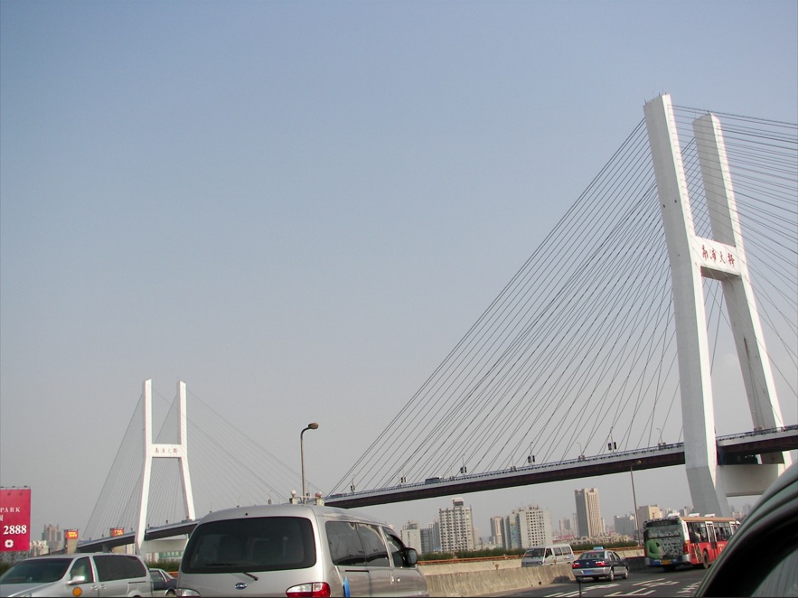 Puente Nanpu. Shanghai es famosa por sus numerosos puentes, con un total de seis cruzando el río Huangpu. El cuarto puente de cable más largo del mundo, el Puente Nanpu fue construido en 1991 y fue el primer puente de acero y hormigón con techo de cable en Shanghai. Desde Puxi, el puente presenta una espiral asombrosa, una hazaña de ingeniería admirada por profesionales de todo el mundo. Grandes torres elevan 150m de altura, manteniendo los cables en su lugar, permitiendo majestuosamente que los conductores pasen. El giro de la carretera también permite a los transeúntes ver el puente y admirar su gran estructura.
